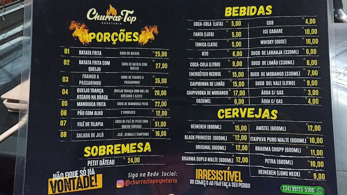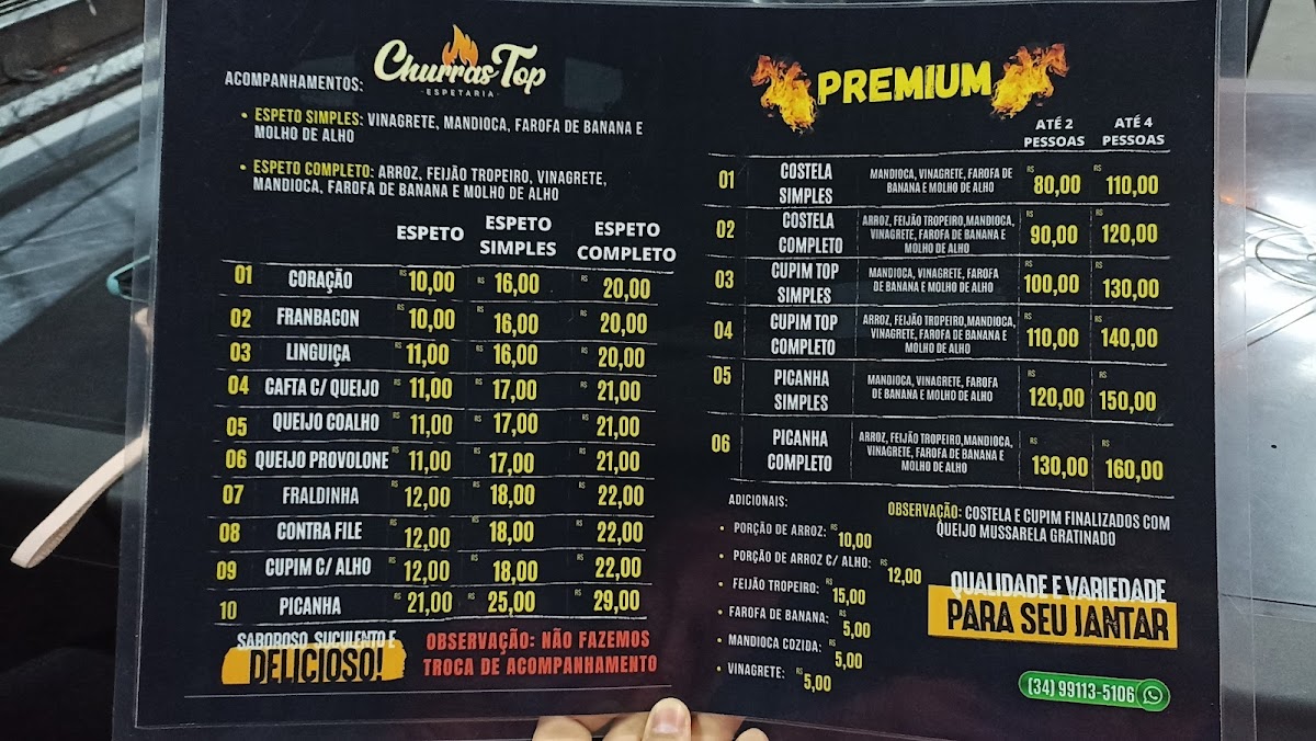 Introducing the Menu at Churras Top Restaurante e Espetaria
